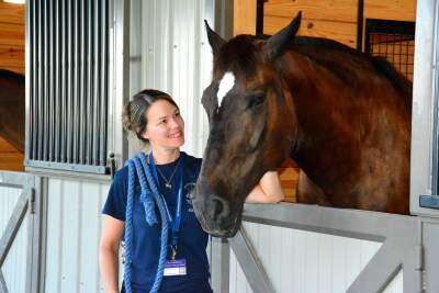 Their duties include mucking the stalls, feeding, ensuring there is plenty of fresh water for each mount, looking for any apparent injuries and making sure the barn is clean. The same process will be repeated in the evening by another set of volunteers.