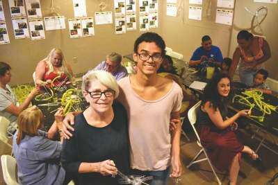 PRESS PHOTO BY ED COURRIERFrom left, “Izanami” Francis Beaty and Derek Reynoso in the Baum School of Art Rodale Family Gallery where “Third Thursday” participants created pieces for “The Arrival,” a site-specific installation inside the David E. Rodale Gallery. “Izanami” is Japanese for “She who invites,” according to Beaty, Baum School artist-in-residence. Reynoso, former Baum art student and Copyright - &Copy; Ed Courrier