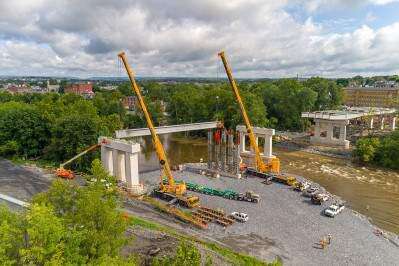 Equipment lifts beam No. 1 into place last week, after Coplay Borough took its first delivery Aug. 20.