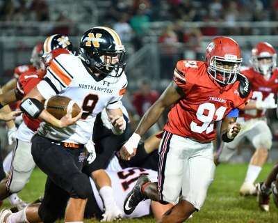 But a rough third quarter, which featured two interceptions into the hands of Trojans players, proved to be the doom for Northampton as it dropped its 2018 season opener 41-0 last Friday night at Parkland School District Stadium in Eastern Pennsylvania Conference action.