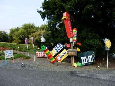 PRESS PHOTO BY ANNA GILGOFFThis roadside candy display along Route 100, just north of the Lowhill Township Building, was designed by Phil Rossetto and Greg Snider to bring a little happiness to passersby.