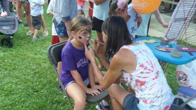 Kylie Copeland has her face painted by Betsy Middleton Aug. 7 at the Upper Macungie Township Police Department's National Night Out 2018 at Lone Lane Park. National Night Out is an annual event to promote police and community relations.PRESS PHOTO BY KENNETH BLEILER Copyright - COPYRIGHT, 2011