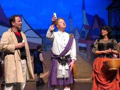 The romantic leads are the outsider Tommy Albright (Robert Clausnitzer) and villager Fiona (Elizabeth Marsh-Gilkeson). Clausnitzer provides just the right balance in his portrayal of the conflicted lover torn between what his heart wants and what his reason is telling him. It doesn’t hurt that he also has a splendid singing voice.