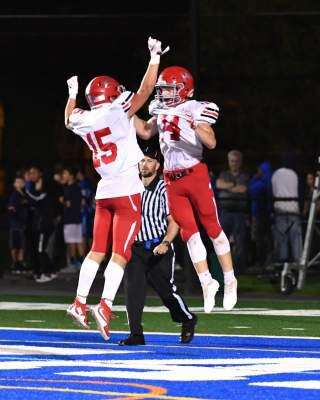 Nazareth’s big-play threat, quarterback Anthony Harris, kept the Blue Eagles in the game. He completed 22-of-42 passes for 291 yards and three touchdowns, and adding 159 rushing yards with a 75-yard touchdown run on 13 carries. His favorite target Nick Viva had four catches for 115 yards and two scores.