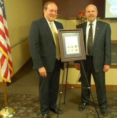 Hozza’s commitment to the community and Scouting has long been recognized. He was presented a plaque with several Boy Scout merit badges.