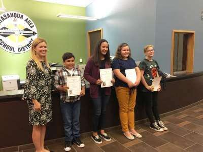 Catasauqua Middle School Principal Melissa Inselmann took the floor to announce the Star Players of the Month for September. They are fifth-grader Dylan Croll; sixth-grader Maxine Kovacs; seventh-grader Lauren Delong; and eighth-grader Briell Carvalho.