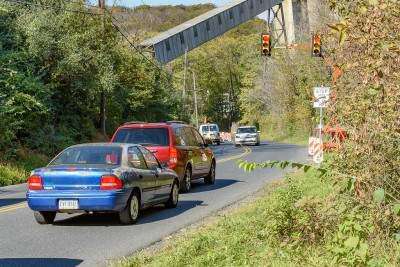 Use caution in area Tweet Published October 31. 2018 12:00AM by The Press Motorists slowly make their way along Cementon's Coplay Road, reduced to one lane for repairs by Lafarge. Copyright - Scott M. Nagy