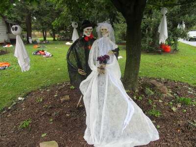 PRESS PHOTO BY ANITA HIRSCHThis bride and groom took one part of their vows - 'til death do us part” - very seriously. The Halloween wedding display decorates the home of Jim Heidecker and family, 3905 Kilmer Road, South Whitehall Township.