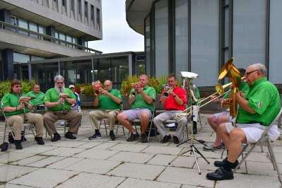 After a flag-raising outdoors on Payrow Plaza, the assembly reconvened inside city hall for the official signing of the Sister City documents. Musical selections by tenor Lane Conklin McCord accompanied by Bethlehem Bach Choir Artistic Director and Conductor Greg Funfgeld on keyboard were followed by an exchange of ceremonial gifts between Donchez and Maffeo.