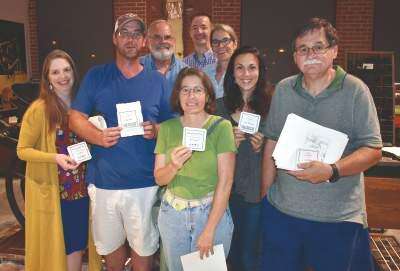 press photos by ed courrierFront row from left, “apprentice printers” Liz and Matt Brady, Amy Capwell, NMIH education coordinator Kitsa Behringer, and Joe Weber at a recent NMIH printing and papermaking workshop. The instructors from left in back, are master printer Bob Mueller, papermaking expert Tom Necker, and bookbinding expert Ulla Warchol. Copyright - &Copy; Ed Courrier