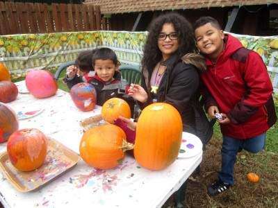 PRESS PHOTOS BY ANITA HIRSCHJayvian Miranda, Michelle Hernandez and John Corales, all of Hazelton, paint pumpkins during Boo at the Zoo at Lehigh Valley Zoo. Michelle was celebrating her 17th birthday at the zoo with her family.