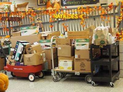 PRESS PHOTO BY LINDA DEIBERTNorthwestern Elementary School students and staff collected 1,061 pounds of food during October as part of Spirit Week for the Christ's Church at Lowhill Food Pantry. Everything is packed up and ready to be delivered to the pantry.