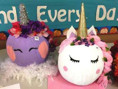 Amani Pena and Brennah Coulter's unicorn pumpkins are the winners in the prettiest pumpkin category during Sheckler Elementary School's pumpkin-decorating contest. The winners were named Oct. 25.Press photos by Samantha Anderson