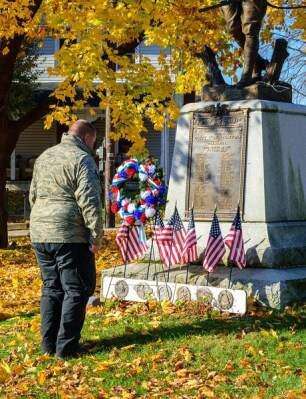 Honoring our veterans Tweet Published November 13. 2018 11:00PM by The Press PRESS PHOTO BY SCOTT M. NAGYGary Fister bows his head after placing a wreath at the base of the Doughboy statue in Egypt during a Veterans Day program Nov. 11. Copyright - Scott M. Nagy