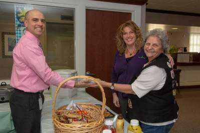 PRESS PHOTOS BY LOU WHEELANDJohn Hemak, commercial lender at New Tripoli Bank, and Sundra Bachman, vice president and senior branch manager in charge of branch retail staff, were delighted to serve their “official” Brat Girl, Doris Woodring of Whitehall. Woodring, a native of Germany, has live in the U.S. since early childhood. She was wearing a travel vest with patches showing all the regions of Copyright - Lou Wheeland Photography