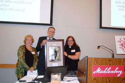 Marcie Lightwood, social worker, Trinity Soup Kitchen, and schools program coordinator, Institute for Jewish and Christian Understanding of Muhlenberg College, and Peter A. Pettit, Director, Institute for Jewish and Christian Understanding of Muhlenberg College, presented the award at the dinner.