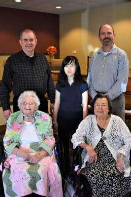 PRESS PHOTO COURTESY ALLENTOWN MUSIC CLUB(seated) Martha Rambo, founder of the Young Musicians, Paula Evans, founder of the camp award, (standing) Bob Premecz, counselor to the young musicians, Yanfei Sophie Wen, and Michael Grather, president of the Allentown Music Club, attended the club's 2018-19 meeting in Zentz Community Center at Fellowship Manor, Whitehall.