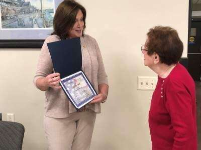 During Lutheran Manor of Bethlehem's resident meeting recently, Edith Flick was presented a District Office Certificate from State Representative Jeanne McNeill recognizing her 100th birthday Nov. 28. Flick was surprised when her son, James Flick, and daughter, Elsie Thompson, came to the meeting to join in the celebration. McNeill later presented Flick with an official House of Representatives
