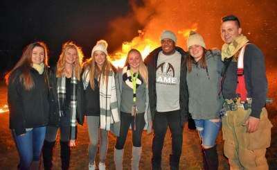 PRESS PHOTOS BY TINAMARIE MARTINMaddy Emery, Tyra Brown, Bree Sheldon, Emma Bellesfield, Naj'Mar Calhoun, Hannah Greenberg and Joey Kober, all of Catasauqua, warm up next to the bonfire during the annual school event, held Nov. 21 at Sheckler Elementary School.