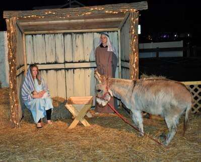 Mary, played by Kayleigh Fisher, and Joseph, played by Hunter Miller, both of Whitehall, celebrate the birth of the Baby Jesus during a live nativity Dec. 15 at St. John's United Church of Christ, 575 Grape St., Fullerton.PRESS PHOTOS BY TINAMARIE MARTIN