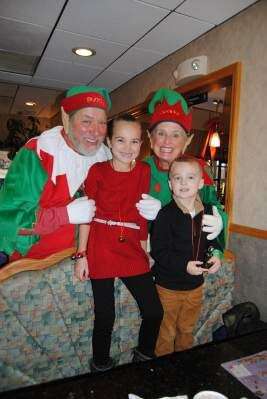 PRESS PHOTO BY SUSAN BRYANTKaylan and Dylan Gallagher of Emmaus visit with Dave and Pam Schiaffo, who were helping elves, Buddy and Sparky, at the Breakfast with Santa Dec. 8 at the Parkland Restaurant, South Whitehall.