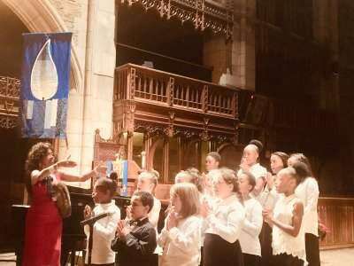 Broadway, television and movie veteran Lynnie Godfrey, left, conducts the Allentown Children's Christmas Chorus in a debut concert Dec. 7 at St. John's Evangelical Lutheran Church, 37 S. Fifth St., Allentown. The 14-member chorus sang holiday selections, which included choreography, and were accompanied by a pianist at the baby grand.
