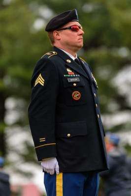 Left: Retired Army National Guard Sgt. Richard Braun, of Whitehall, stands at attention during a Wreaths Across America ceremony, held Dec. 15 at Cedar Hill Memorial Park, Airport Road.PRESS PHOTOS BY SCOTT M. NAGY Copyright - Scott M. Nagy