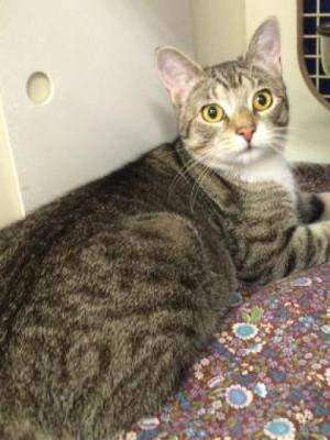 Tina is a 4-year-old domestic shorthair. She loves everyone and loves to be petted and snuggle under the covers. She has some mild dietary restrictions due to food allergies.