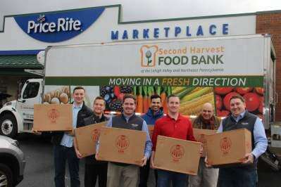 Photo courtesy BML Public RelationsDom Anderson, Jon Wiltrout and Jack Gehringer of Price Rite Marketplace of Bethlehem, Manny Mondes, Chuck Pountney and Chuck Ottaviano of Hormel join Steve Hildner of Wakefern Food Corp. in donating hams to Second Harvest Food Bank of the Lehigh Valley and Northeast Pennsylvania. Over 300 hams were donated to local food banks to help families this past holiday