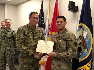 As a result of his exceptional commitment to selfless service and mission success, Vess received a Joint Service Commendation Medal and a Coin from the Sgt. Major of the Army, Daniel Dailey.
