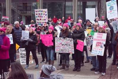 Though the temperature was a chilly 32 degrees, a crowd of some 200, mostly women, gathered at Payrow Plaza beside Bethlehem City Hall for the third annual Women’s March of the Lehigh Valley. This year, however, the Bethlehem Women’s March was not affiliated with the National Women’s March because of a desire to express disapproval of what was seen as anti-Semitism and ties to the Nation of Islam of some of its leaders.