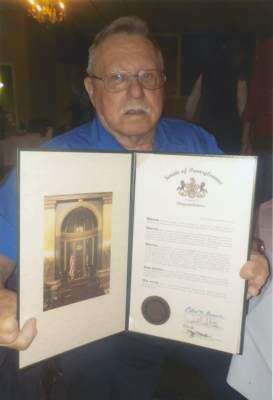 Kenny Knapp finds a package in his mailbox addressed to him from Pennsylvania State Sen. Pat Browne, R-16th, in December 2018. Puzzled, he finds a Senate citation based on an earlier story in the East Penn Press that told of his 65 years working as a fireman and later with the firepolice, first in Silverdale and later in Lower Milford Township.CONTRIBUTED PHOTO