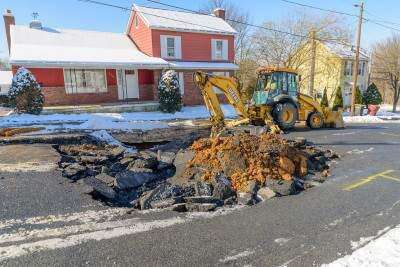 Sinkhole forms in West CatasauquaEmergency personnel are on the scene of a sinkhole that formed Jan. 30 in the 2300 block of Second Avenue, West Catasauqua. According to reports, the sinkhole, caused by a water main break, measured more than 20 feet in length and spanned more than half of the street's width. No other information was available at press time.PRESS PHOTO BY SCOTT M. NAGY Copyright - Scott M. Nagy