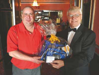 PRESS PHOTO BY ED COURRIERAt left, Michael Nonnemacher of Allentown, who won last year's “Readers Pick the Oscar Winners Contest,” is presented the prize package from Roxy Theatre owner Richard Wolfe, right, inside the historic Northampton movie theater. Nonnemacher correctly picked all seven winners in the 90th Academy Awards and had the earliest submission date for the 2018 Lehigh Valley Press Copyright - &Copy; Ed Courrier