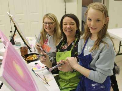 PRESS PHOTOS BY PAUL CMILFamily members Beth Bollinger, Jessica Jenny and Aylivia Jenny are all smiles during a Paint and Sip event, held Feb. 9 at Charotin Hose Company, 1066 Fourth St., North Catasauqua.