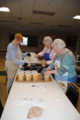 PRESS PHOTOS BY SUSAN BRYANTNorthern Valley Ladies Auxiliary members Caroline Kotch and Irene Shoemaker, both of North Whitehall, and Cathie Mlynek of Whitehall, fill plastic containers with homemade chicken noodle soup for NOVA's soup and pie sale Feb. 11 at the ambulance corps' headquarters in Ormrod.
