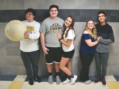 Northwestern Lehigh “Addams Family” cast, from left, Alex Sprossel (Uncle Fester), Hayden Bobbyn (Gomez Addams), Katerina Almeida (Morticia Addams), Andi Frano (Wednesday Addams) and Spencer Beidler (Lucas Beineke). Copyright - &Copy; Ed Courrier