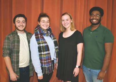 Northampton Area High School's “Mary Poppins” cast includes, from left, Brandon Costanzo (Bert), Celia Doll (Mary Poppins), Lauren Lalik (Jane Banks) and Austin Fleury (George Banks). Copyright - &Copy; Ed Courrier