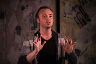 As a dancer, Janovsky uses his entire body to tell his story. His arms flail for emphasis, and his hands pantomime non-existent props. It is the comedian, though, that carries the show. It is often not what Janovsky says, but how he says it, and what he does with his face and body when he says it.