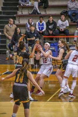 Dieruff’s Kalis Collazo then scored, and Makenzi Rupp, who challenged the Hurricanes with her height on the inside, hit one free throw, but Liberty went at the Huskies again, and after four more points by Eisenhart, MacDonald closed out the game with three points on free throws.