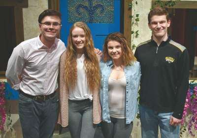 Whitehall High School “Mamma Mia” cast, from left, includes Zane Kristof (Sam Carmichael), Emma Garneau (Tanya), Alexsondra Jordan (Sophie Sheridan) and Michael McCloud (Harry Bright). Copyright - &Copy; Ed Courrier