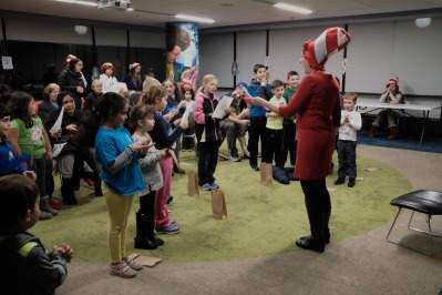 On March 5 Edana Hoy, head of Youth Services, about 40 children, and 20 parents did just that. The group gathered in the children’s department on the upper level of the library to mark Dr. Seuss’s birthday.