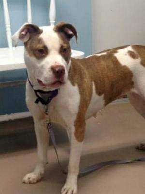 Rosie Girl is a 2 -year-old female terrier/pit mix. She is very happy and sweet. She loves being with her person. She can be shy at first and show food aggression. She is selective with other dogs.