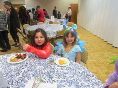 Brianna Pure of South Whitehall and Thalia Levine of Allentown celebrate Purim in costume and eat fruit and hamentashen.PRESS PHOTOS BY ANITA HIRSCH