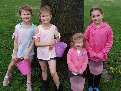 Bella Barone and Kiera Jones, both of Coplay, and Samantha and Sophia Young, both of Palmerton, are eager to begin Coplay's Easter egg hunt, held April 20 on the grounds of St. Peter Roman Catholic Church, South Fifth Street.