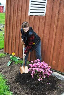 PRESS PHOTO BY SUSAN BRYANTRoberta Lee Robbins shovels mulch around an azalea planted in memory of her father John B. Kuchera and brother John A. Kuchera. The planting was at the 39th annual Parkland Garden Club Arbor Day celebration April 27 at the Lehigh Valley Zoo, Schnecksville.