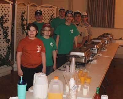 PRESS PHOTOS BY PAUL CMILBoy Scout Troop 94 mans the serving line for the March 31 breakfast at Catasauqua American Legion Post 215, 330 Second St.