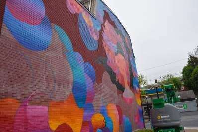 Quintanajornet has been working with ArtsQuest to create a mural on the side wall of Café The Lodge at 427 E. Fourth St., selected as the 2019 SouthSide Arts & Music Festival Mural site. She began “Project Wallflowers” April 26. Quintanajornet is hoping to finish the mural within a week, and joked that she would be “doing a rain dance” to keep away bad weather that could slow down her process.