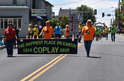 Coplay residents celebrate “the happiest place on Earth” during the borough's 150th anniversary parade, held May 18. A party and fireworks display June 15 at Balliet Stadium are next in the celebration lineup.PRESS PHOTOS BY TINAMARIE MARTIN