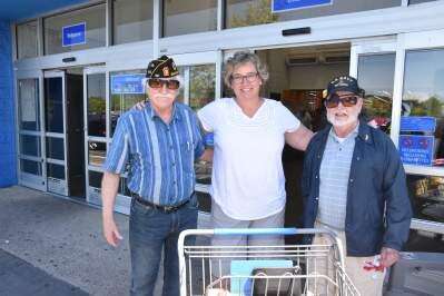 PRESS PHOTO BY JIM MARSHAfter shopping at the Walmart in Lower Macungie Township, Holly Smith of Upper Macungie paused to purchase buddy poppies offered by veterans to help support disabled vets. Dave Bradley and Bob Mumbauer are members of American Legion Post 191, Emmaus. They said poppy sales were brisk at the Walmart, and they would be selling the poppies at the Lehigh Street Redner's Market